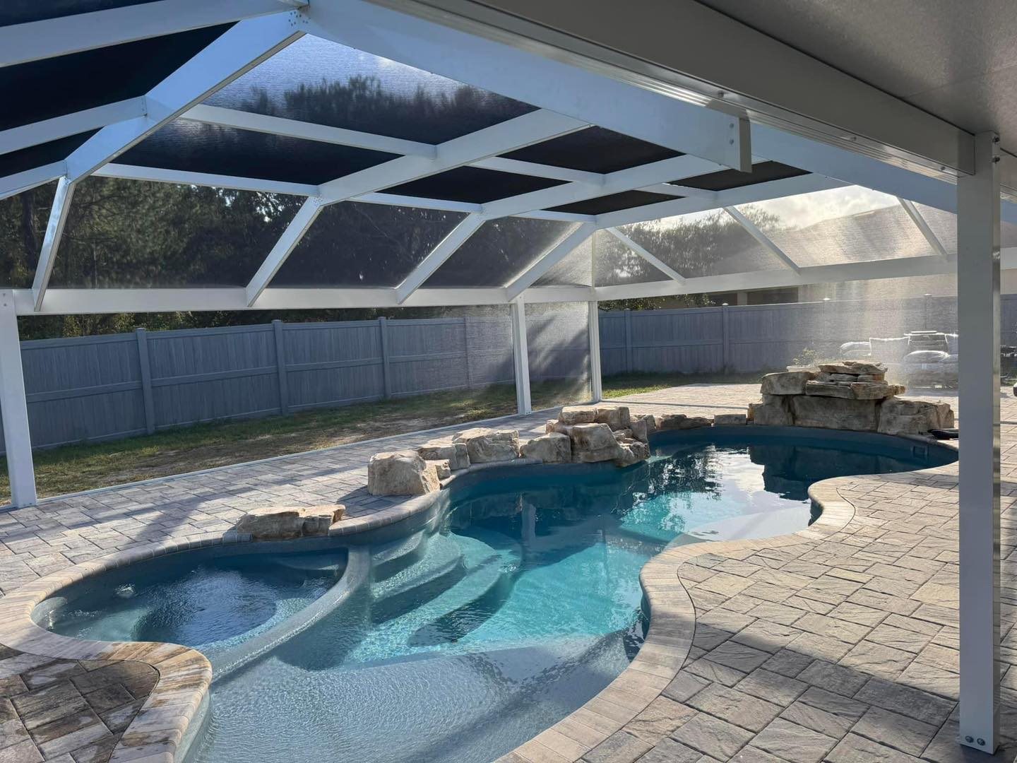 Choose from a wide selection of premium materials including pavers, stamped concrete, travertine, natural stone, and composite decking — each offering unique textures, tones, and benefits.