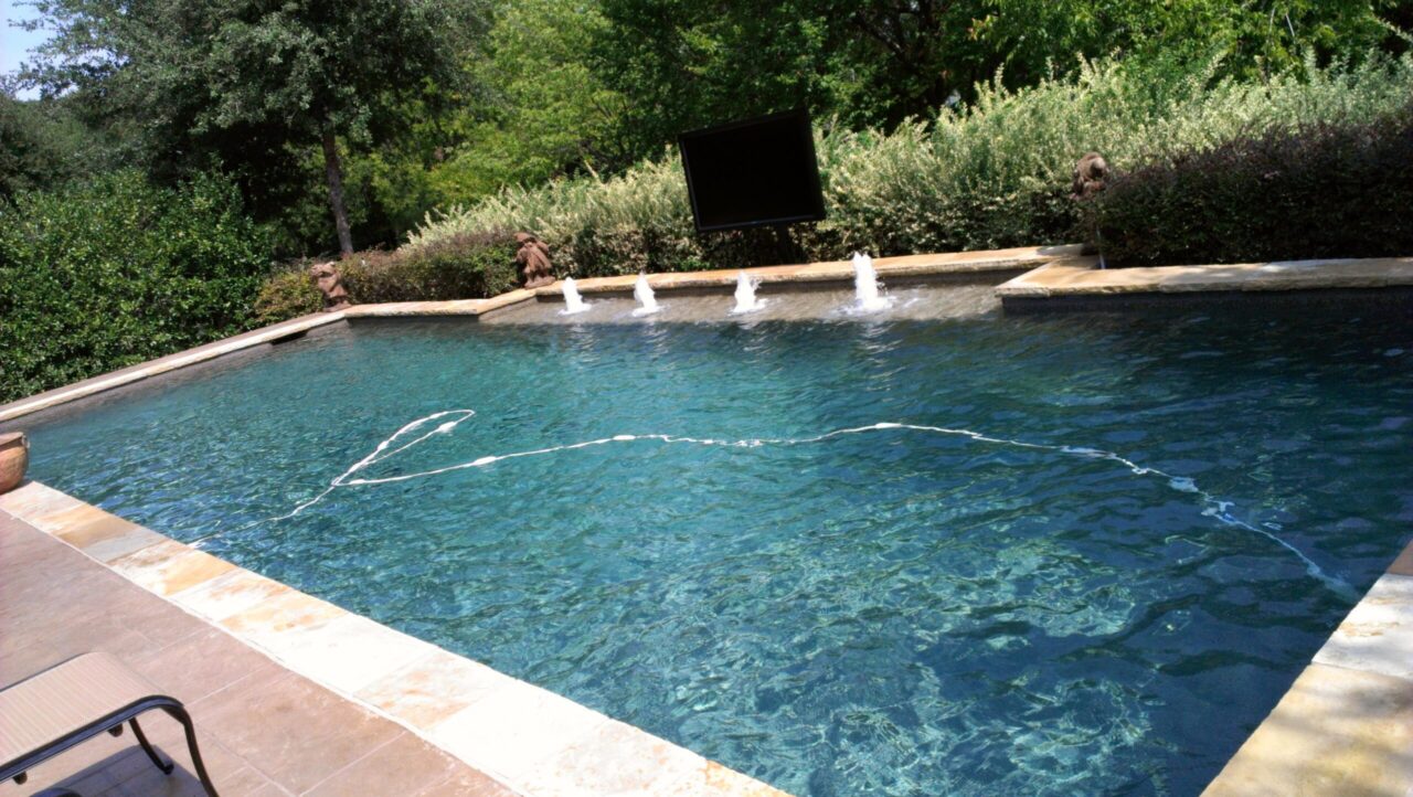 Green water is often caused by algae. We recommend contacting us immediately for a thorough cleaning and chemical adjustment to restore your pool’s clear, blue appearance.